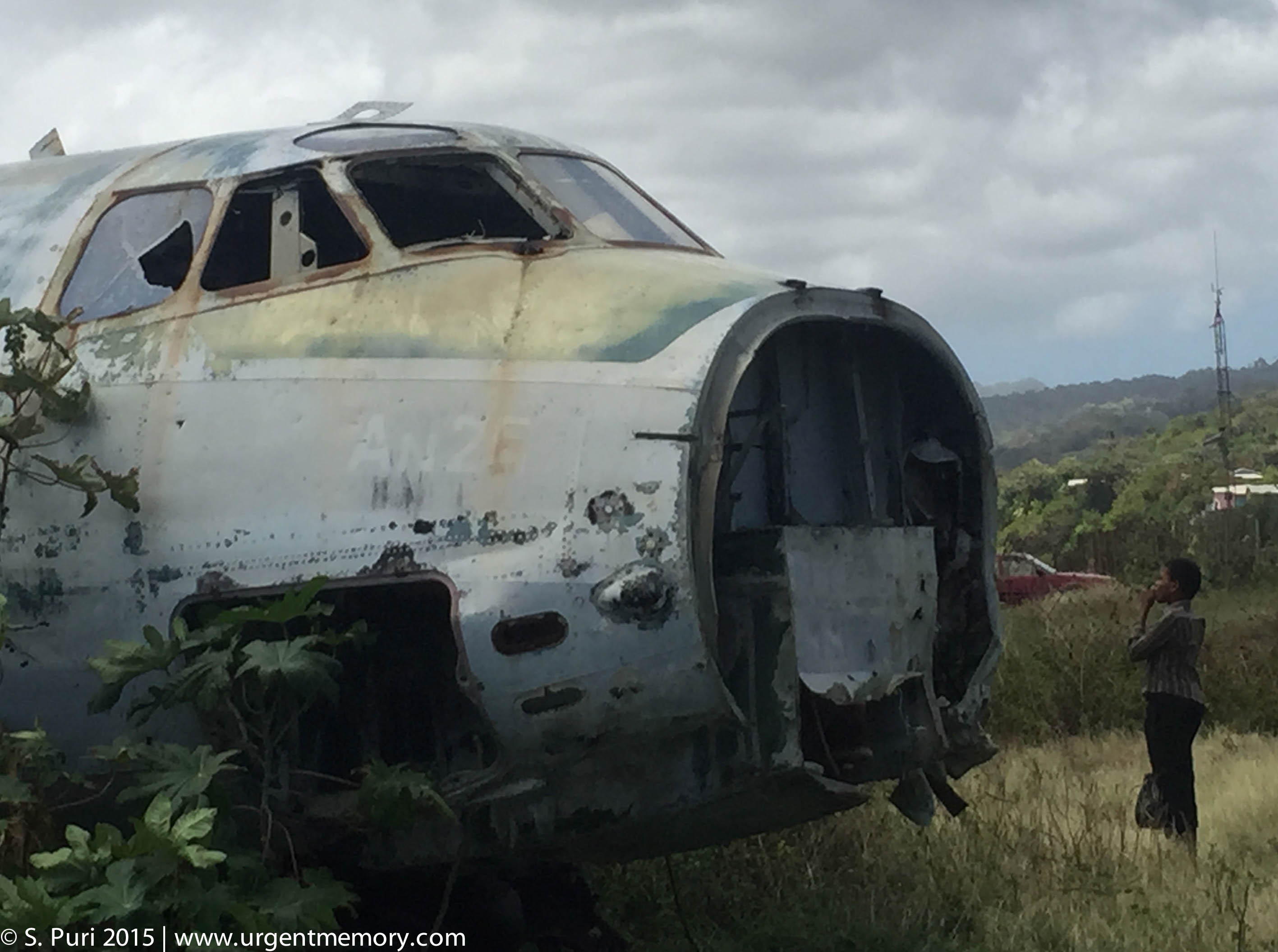 Author: After the Grenada Revolution, the U.S. came in. This used to be the old airport at that time. They were still building the new airport. (See — that’s the old runway where the planes used to land.) So luckily nobody crashed, but … these planes were left here after the Revolution… One of them was going to be used, I think, to spray crops. But I don’t think they ever used it, because by that time the Grenada Revolution fell. Have you heard about the Grenada Revolution?