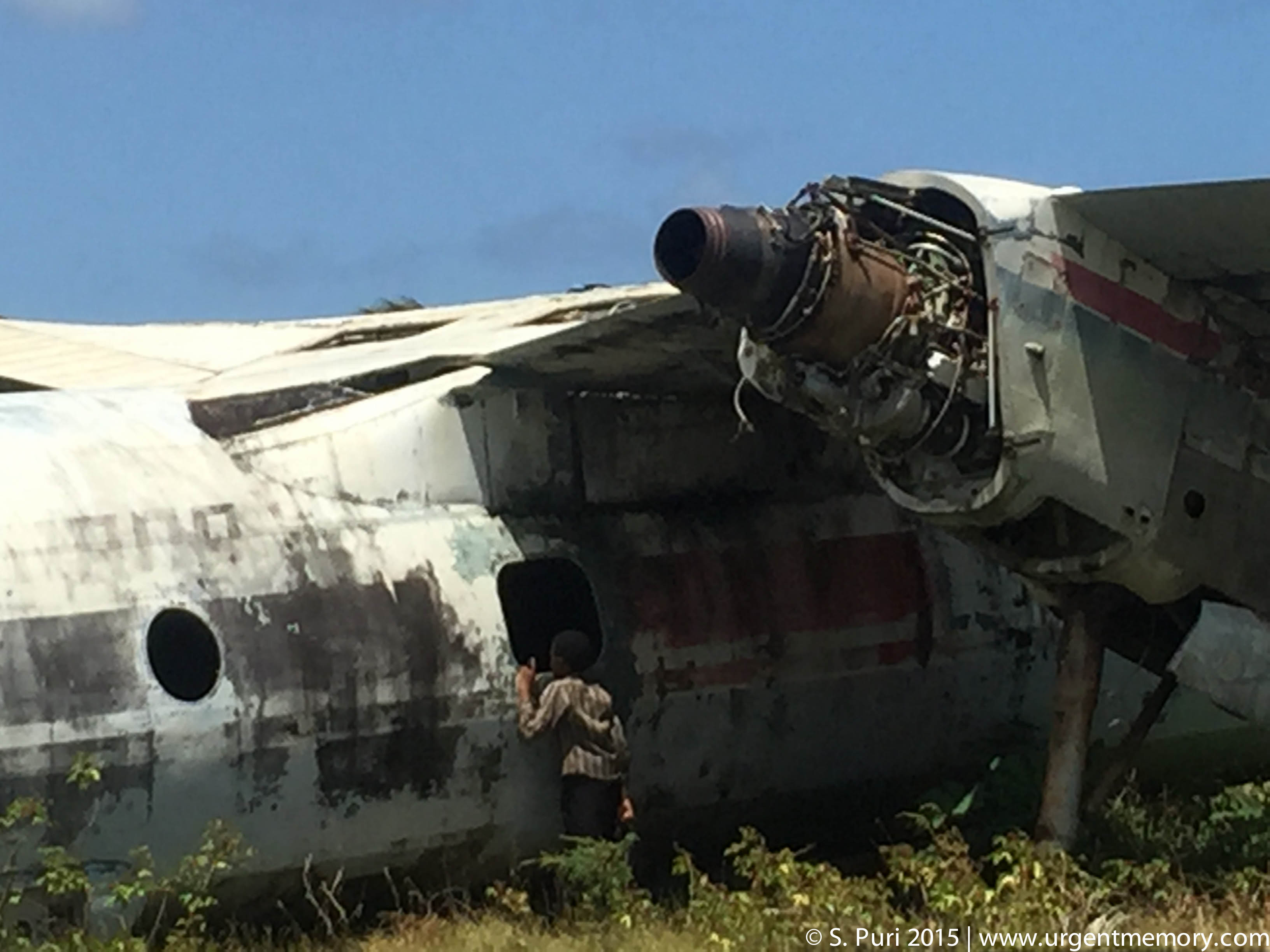 This March while I was in Grenada to launch my book, I went as usual to see the planes that still lie at the old airport at Pearls from the time of the Revolution. A young boy walking by also began to contemplate them, circling around them, peering in, looking up at the wings.