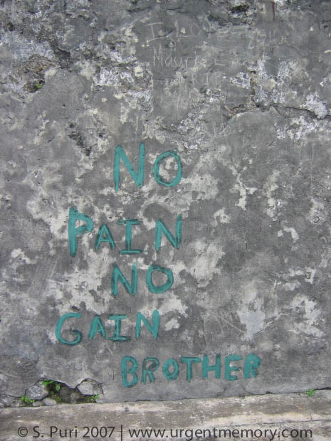 Grafitti on the wall at Fort Rupert/Fort George, where Maurice Bishop was shot dead